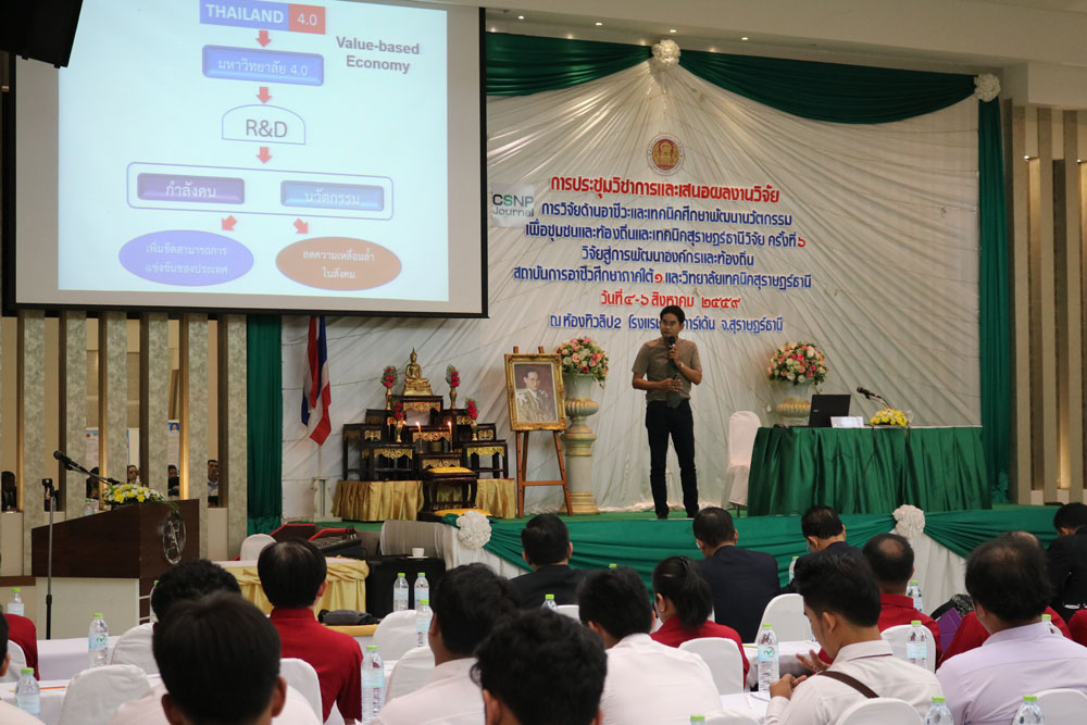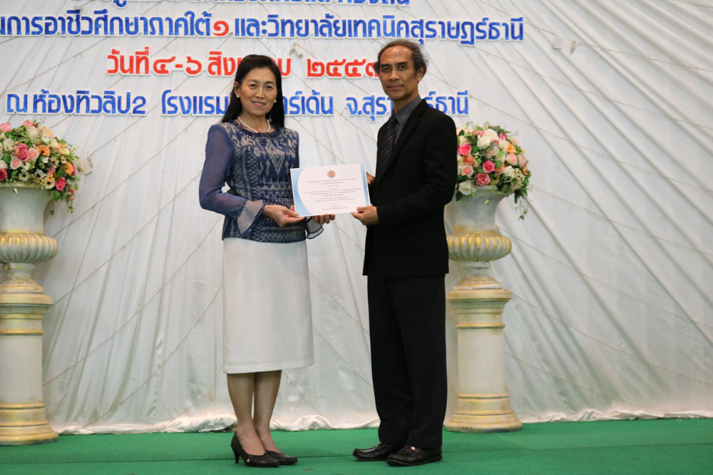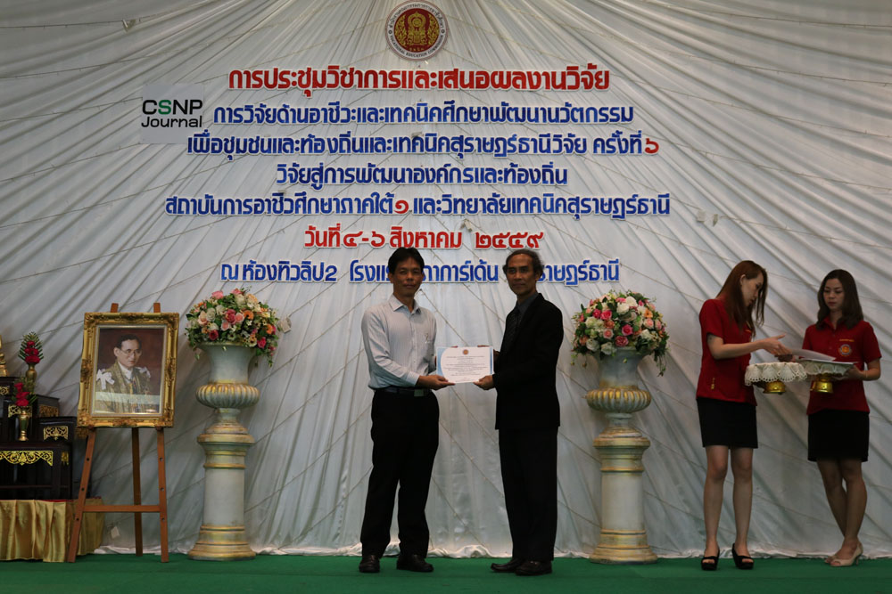 ดร.มงคลชัย สมอุดร ผู้อำนวยการสำนักวิจัยฯ ประธานเปิดการประชุมวิชาการและเสนอผลงานวิจัย การวิจัยด้านอาชีวะและเทคนิคศึกษาพัฒนานวัตกรรมเพื่อชุมชนและท้องถิ่นและเทคนิคสุราษฎร์ธานีวิจัย ครั้งที่ 6 วิจัยสู่การพัฒนาองค์กรและท้องถิ่น สถาบันการอาชีวศึกษาภาคใต้ 1 และวิทยาลัยเทคนิคสุราษฎร์ธานี วันที่ 4-6 สิงหาคม 2559 ณ ห้องทิวลิป 2 โรงแรมนิภาการ์เด้น จ.สุราษฎร์ธานี |